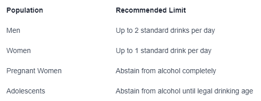 Recommended Guidelines for Alcohol Consumption