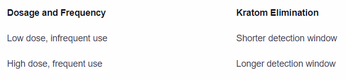 Individuals who use kratom in lower doses and less frequently are likely to have a shorter detection window compared to those who use higher doses more frequently.