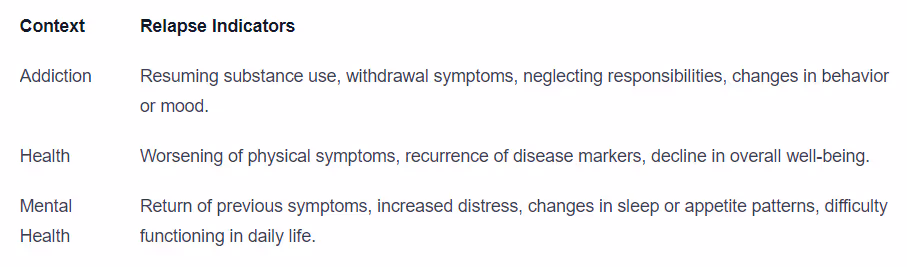 Recognizing the indicators of relapse is essential for early intervention and support. These indicators may vary depending on the specific context, but here are some common signs to look out for: